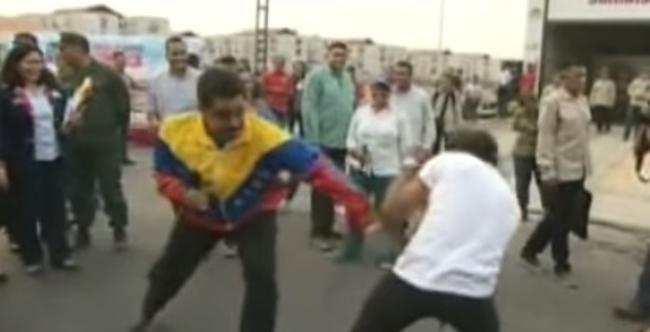 Maduro simula un combate de boxeo en plena calle